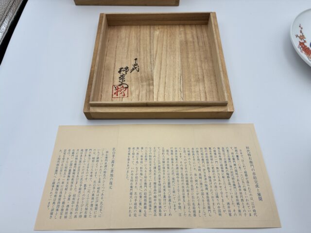 ご依頼主は、先代から受け継いだ陶磁器コレクションの整理を検討されており、その中に十四代酒井田柿右衛門作と伝わる錦梅菊文皿が含まれていました。