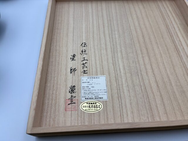 今回ご依頼いただいたお品は、伝統工芸士・灑壹(梶原泰庸)作のもので、上質な木地に丁寧な下地処理が施され、輪島塗特有の堅牢さと美しい漆の艶が際立つ逸品でした。