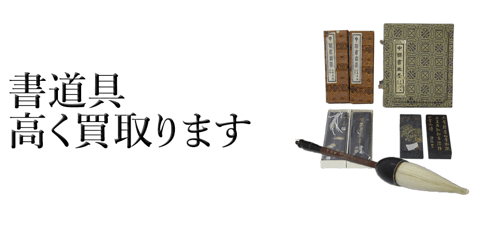 書道具の需要は普遍的に高く、現在も高額の物が数多く取引されております。中でも中国の古い墨や硯、筆などは希少性が高く人気があります。昔のお土産品のような紙箱に入った物でも高値で買取できるケースが多々あります。